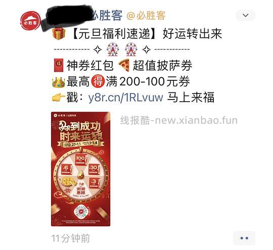 社群必胜客的客服发在朋友圈的,我抽中了29.9披萨券🤣