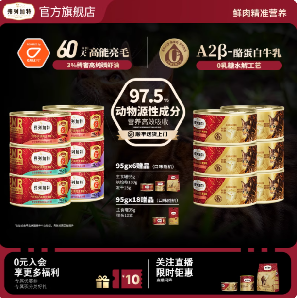 弗列加特官方旗舰店! 弗列加特幼猫罐头95g*6罐 拍下元89起 好单发报员 2025年11月24日 09:34 0 举报 弗列加特官方旗舰店!弗列加特幼猫罐头95g*6罐拍下元89起https://m.tb.cn/h.SwevbG5 天猫爆款,高能亮毛 复制文案