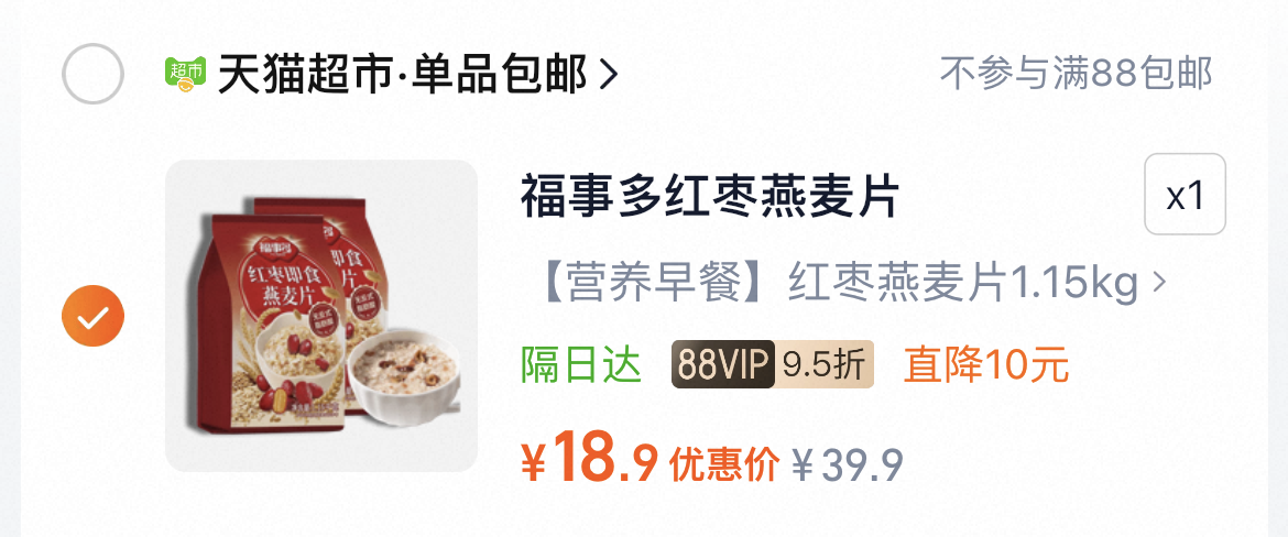 18.9亓,折4亓/斤 福事多 红枣燕麦片1.15kg*2袋好单发报员2025年11月25日 20:430举报 18.9亓,折4亓/斤福事多 红枣燕麦片1.15kg*2袋https://m.tb.cn/h.SxY9z3M复制文案