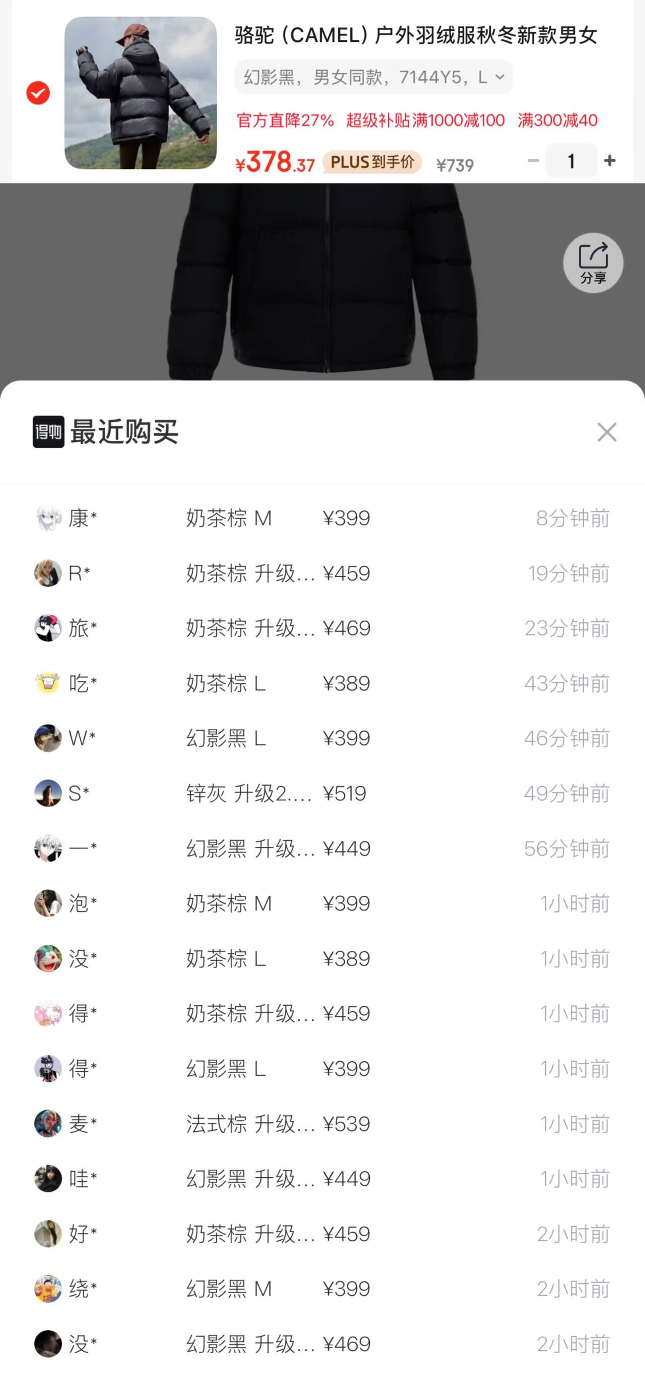 熊猫泡泡羽绒服 黑色补货