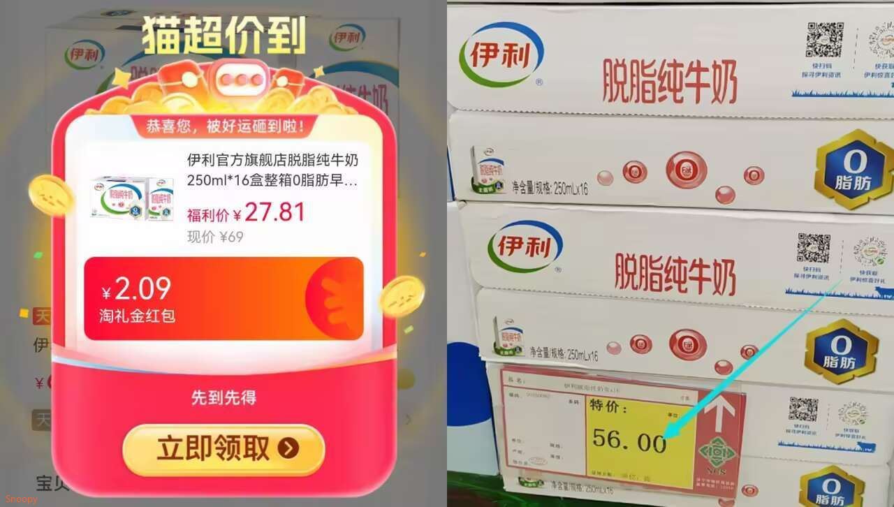 百卟27.8亓元叠弹礼金 伊利 脱脂纯牛奶16盒 只减脂肪不减味 减肥党冲
