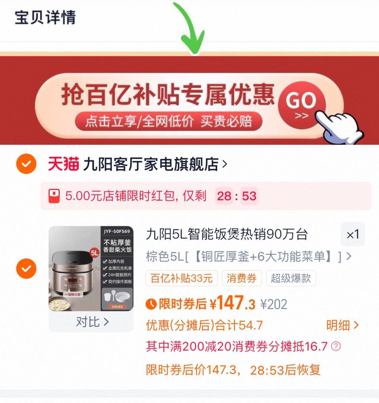 147亓 1、“下拉详情”拍1件 九阳 电饭煲5L大容量 好单发报员 2025年11月26日 23:49 0 举报 147亓1、“下拉详情”拍1件九阳 电饭煲5L大容量https://m.tb.cn/h.SCtxk2j-2、凑1件,用200-20消费劵https://m.tb.cn/h.Sxgy6lJ 复制文案