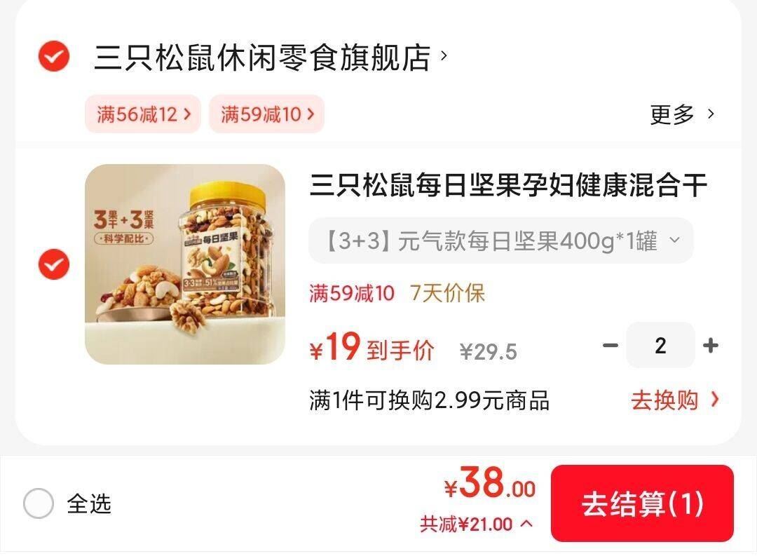 折19元/罐 拍2件38元 史低价! 领19-3券 三只松鼠 坚果零食罐装400g 好单发报员 2025年11月26日 23:57 0 举报 折19元/罐 拍2件38元 史低价!领19-3券https://u.jd.com/WGAhOKO三只松鼠 坚果零食罐装400ghttps://u.jd.com/W1EbsSs混合干果 酥脆健康! 复制文案