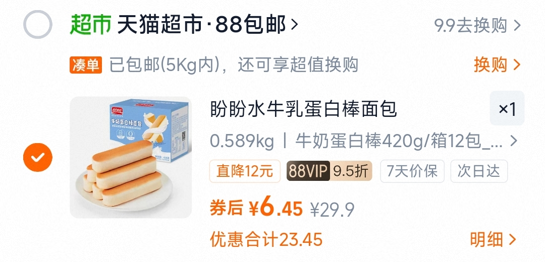 有2福袋,88会员6.4亓 盼盼水牛乳蛋白棒早餐面包420g好单发报员2025年11月27日 08:410举报 有2福袋,88会员6.4亓盼盼水牛乳蛋白棒早餐面包420g https://m.tb.cn/h.SCWk8O6复制文案