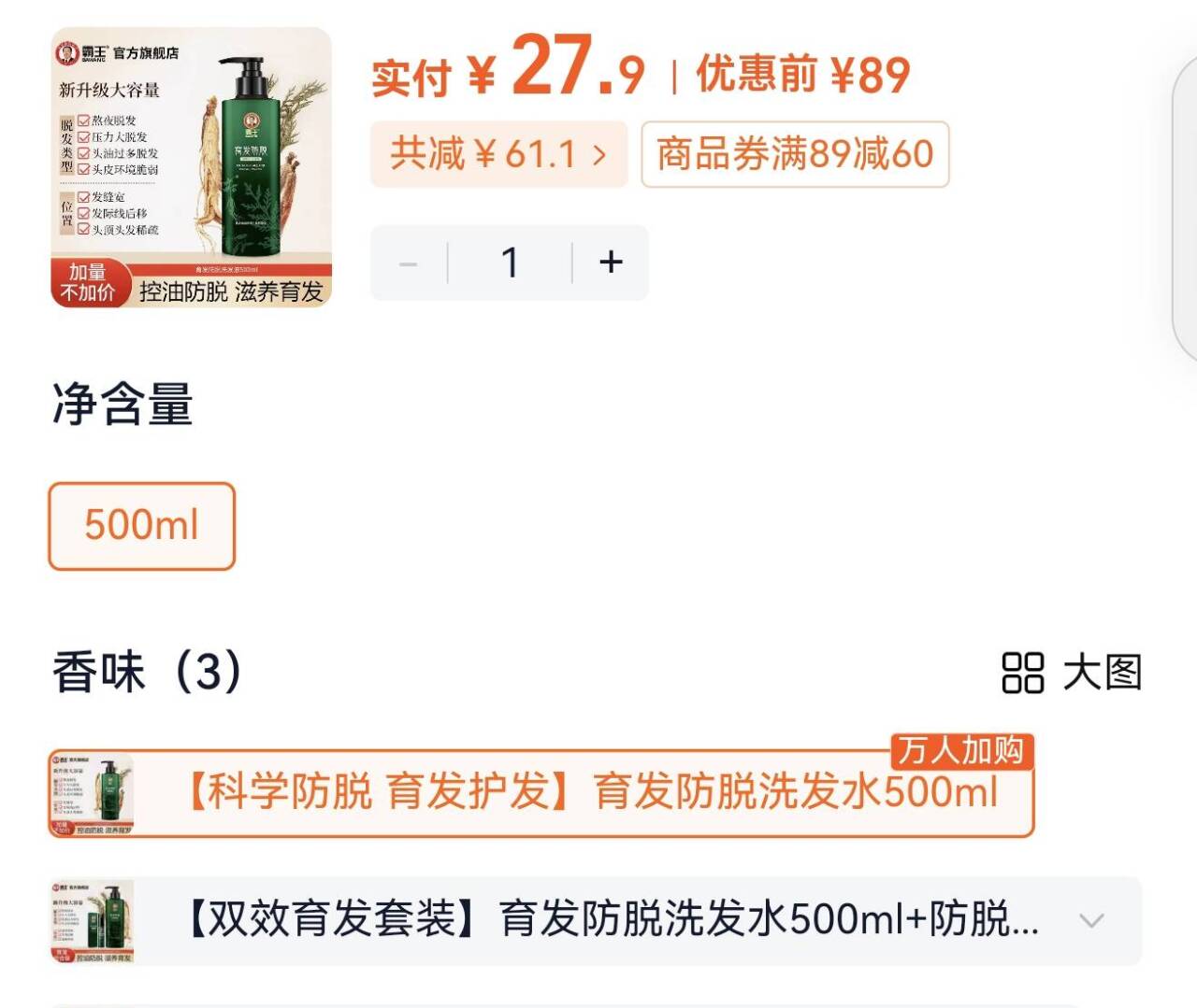 限糧礼琻!史低27元.9 霸王防脱育发洗发水500ml /3/ CZ9848 HMjxfM6tfNV/ 好单发报员 2025年11月27日 08:58 0 举报 限糧礼琻!史低27元.9霸王防脱育发洗发水500ml/3/ CZ9848 HMjxfM6tfNV/ 复制文案