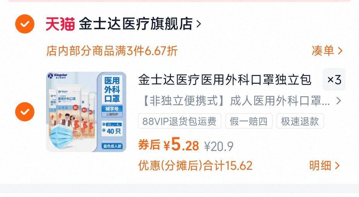 拍3件15.8亓,共120只 金士达医用一次性口罩 好单发报员 2025年11月27日 09:08 0 举报 拍3件15.8亓,共120只金士达医用一次性口罩https://m.tb.cn/h.SxyXAmD 复制文案