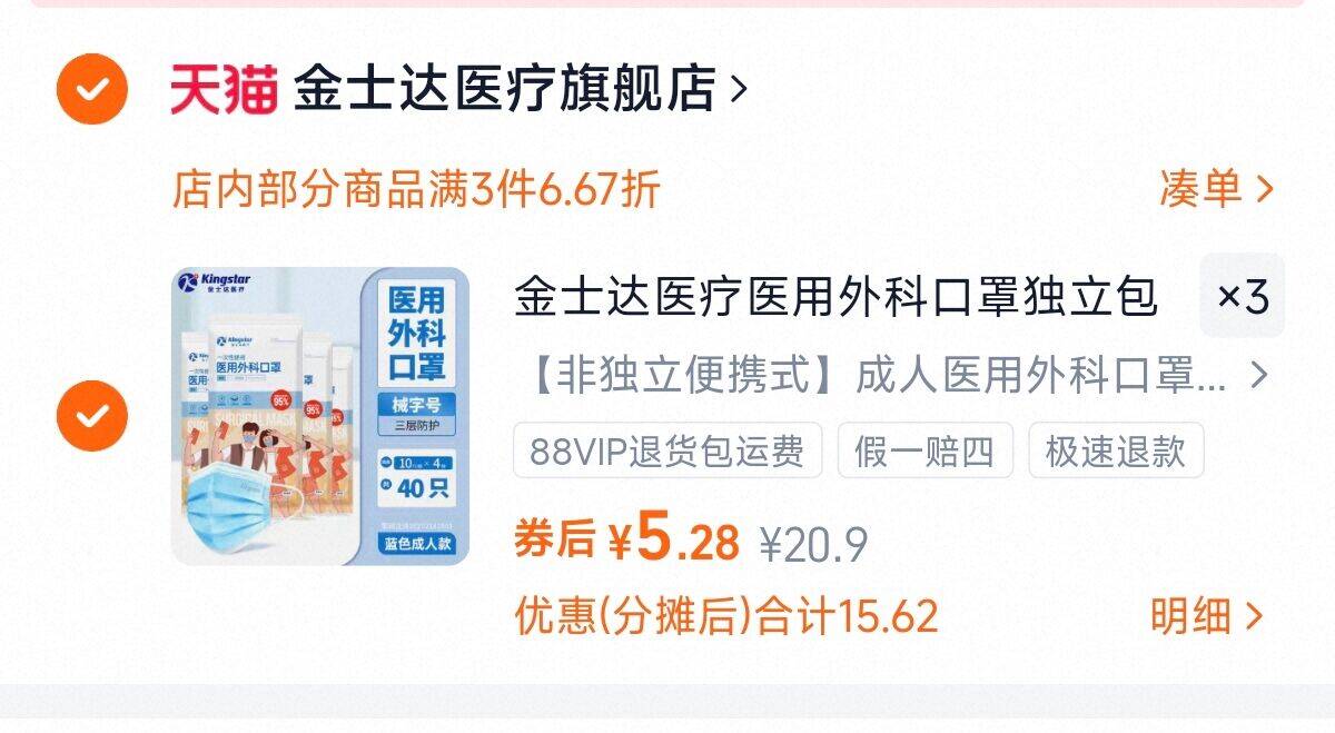 金士达一次性口罩