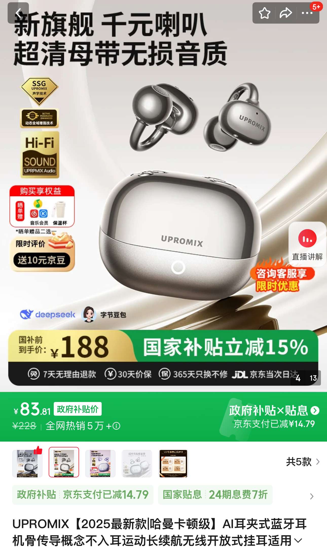 73 晒返10 UPROMIX AI耳夹式蓝牙耳机骨传导, 进熵品页面会弹出限时券,记得领 再来领个-70券 好单发报员 2025年11月27日 09:10 0 举报 【73 晒返10】UPROMIX AI耳夹式蓝牙耳机骨传导, 进熵品页面会弹出限时券,记得领https://u.jd.com/W6E9178再来领个-70券https://u.jd.com/WgElLiK 复制文案