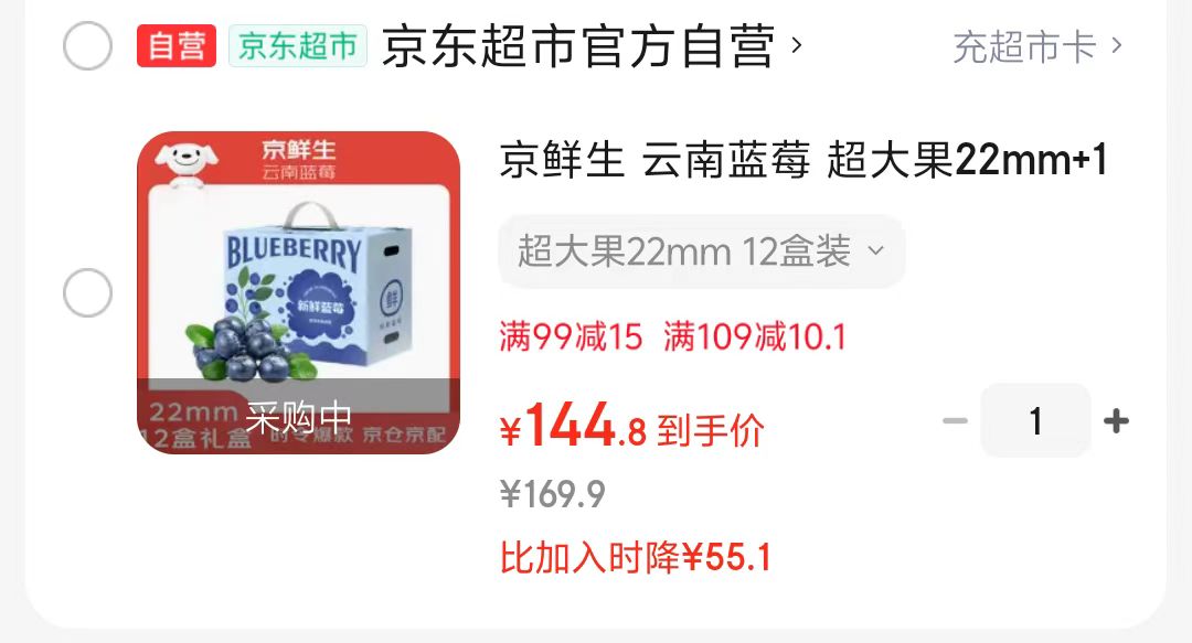 京仓 蓝莓12盒 22mm