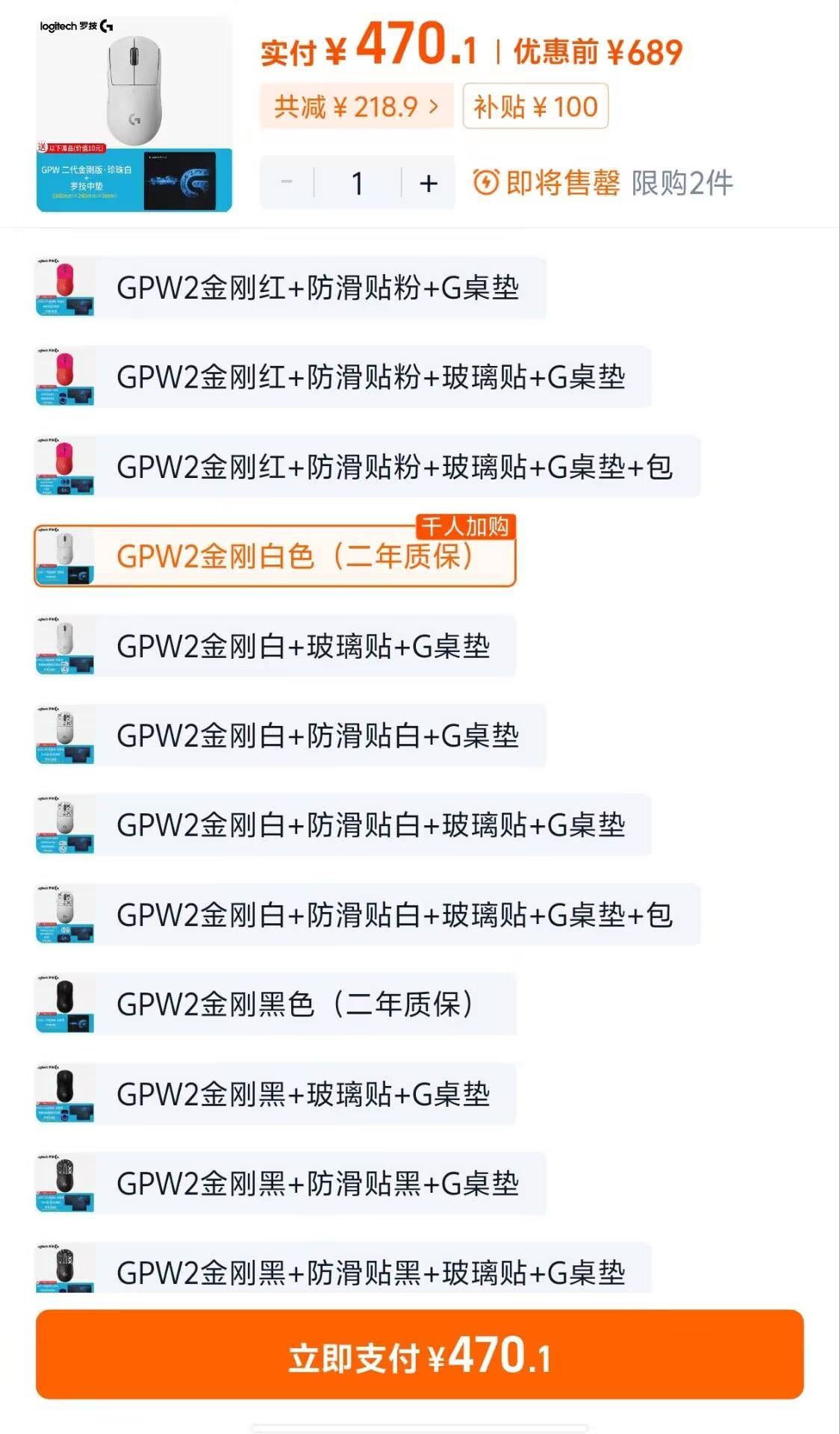 罗技狗屁王2代金刚版 黑白色成立! 470元