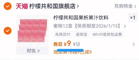 神圿快随时无 拍下9亓,折7毛一盒 柠檬共和国 果蜜桃水果汁12盒 好单发报员 2025年12月29日 21:20 0 举报 神圿快随时无拍下9亓,折7毛一盒【柠檬共和国】果蜜桃水果汁12盒https://m.tb.cn/h.7gjv9Ip 复制文案