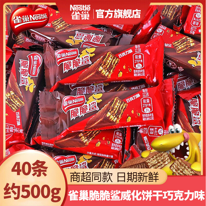 雀巢 脆脆鲨巧克力牛奶威化饼干12.5g 40条礼袋装