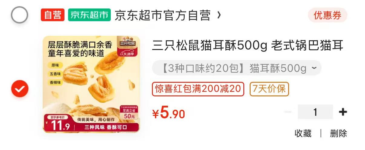 成都地区 三只松鼠猫耳酥500g 【5.9】