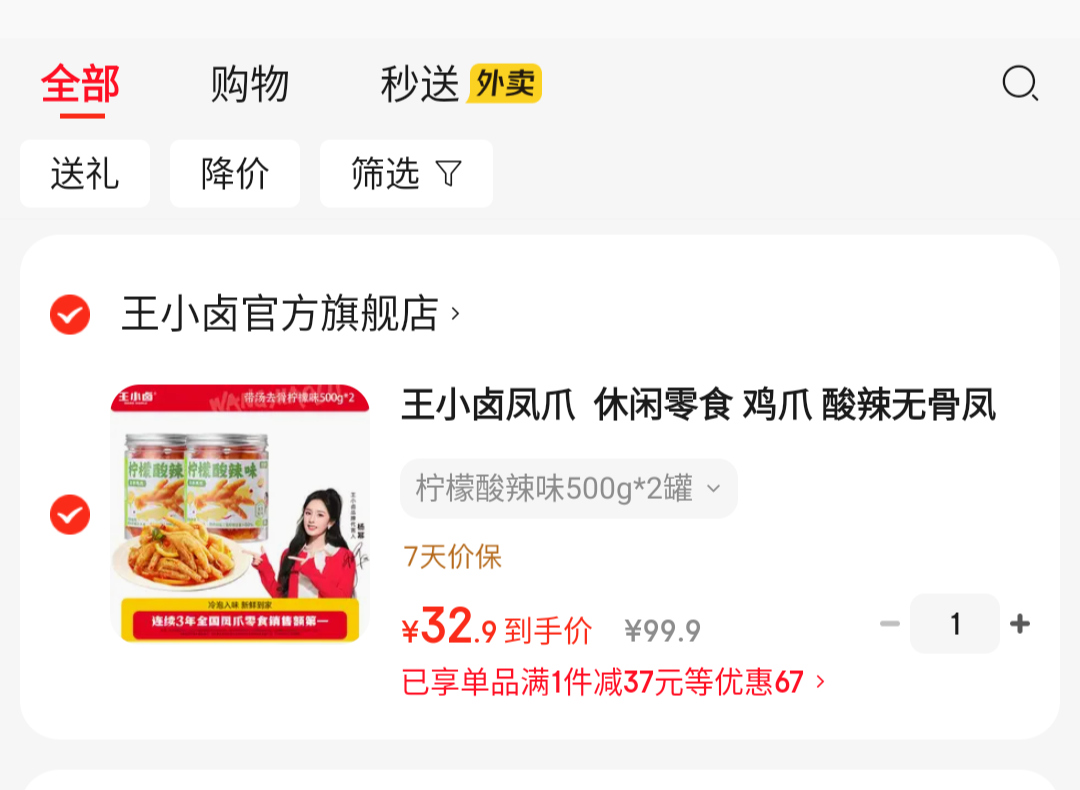 王小卤 酸辣无骨凤爪罐装 500g*2罐【32.9】