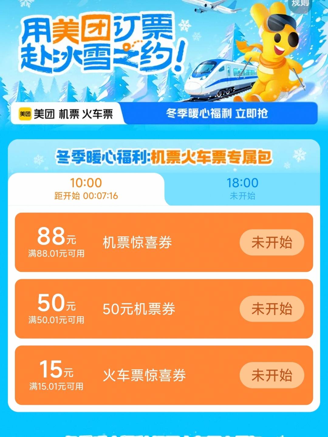 10点 留意15火车票无门槛
