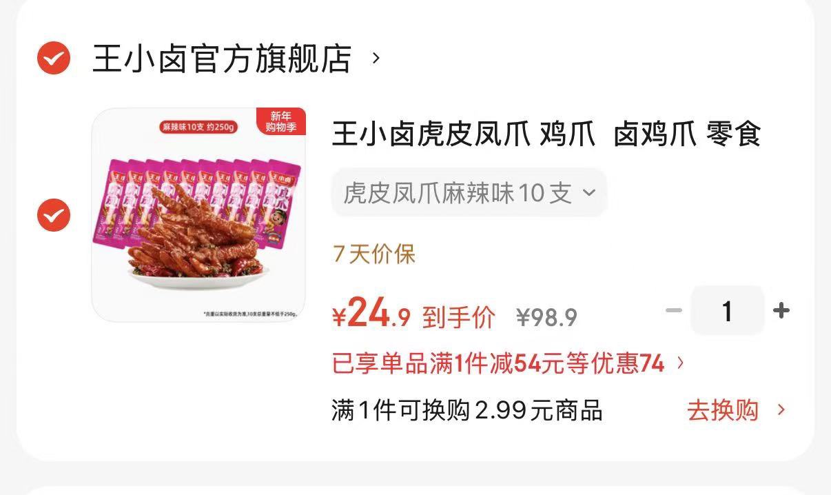 王小卤虎皮凤爪 10支 24.9亓