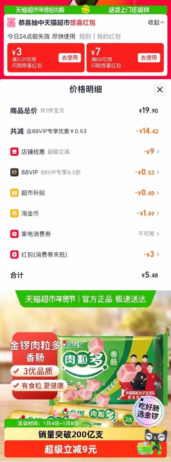 金锣火腿肠肉粒多猪肉味香肠30g*8支