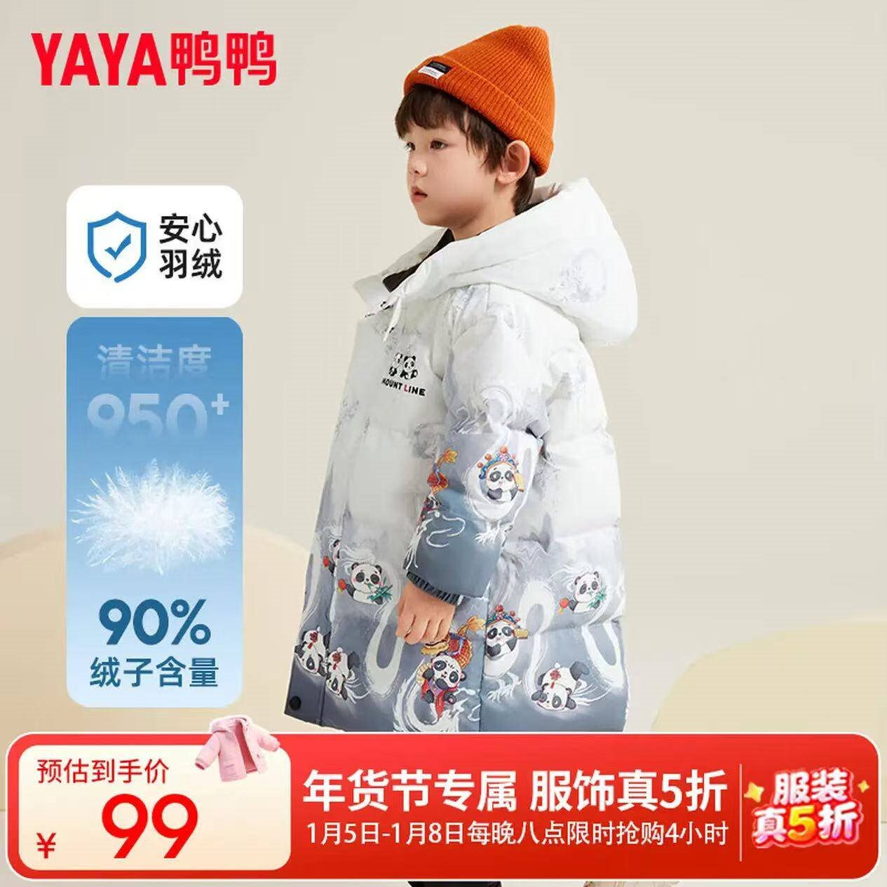鸭鸭 男童中长款儿童羽绒服