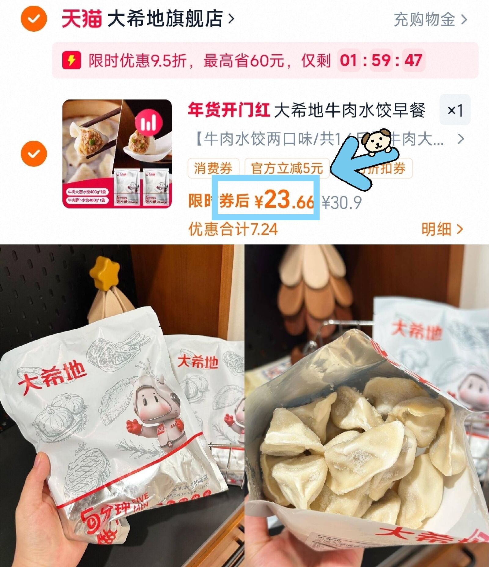 大希地牛肉馅水饺400g*2袋