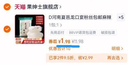 1.9亓/包速度冲 拍5件9.9亓!嗦粉党抓紧 果绅士 龙口宴粉丝100g*5包 好单发报员 2026年01月07日 21:00 0 举报 1.9亓/包速度冲拍5件9.9亓!嗦粉党抓紧【果绅士】龙口宴粉丝100g*5包https://m.tb.cn/h.78nP2mJ 复制文案