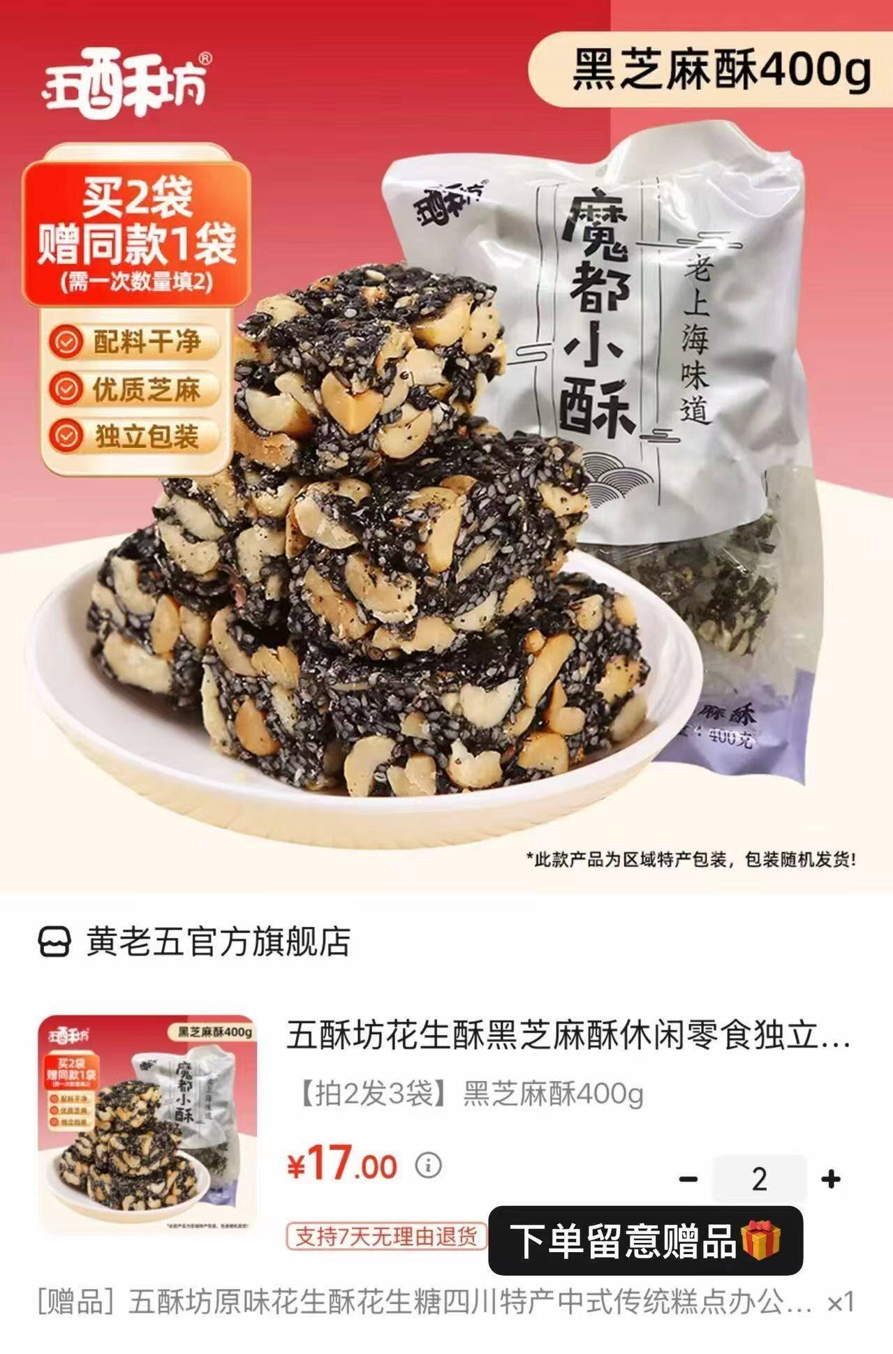 买2件26亓,下単赠同款1袋