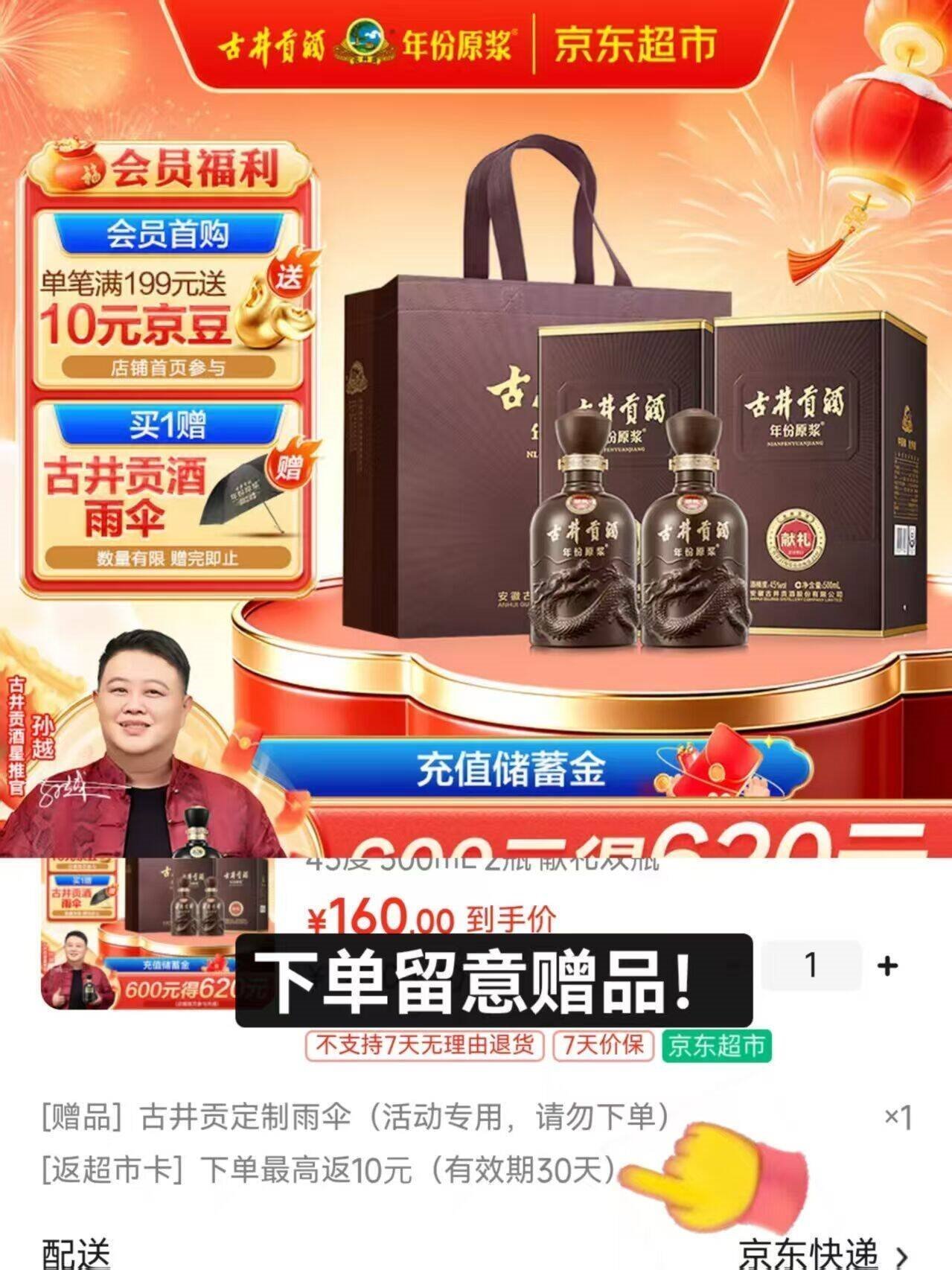 160亓,赠10亓超.市卡 雨伞