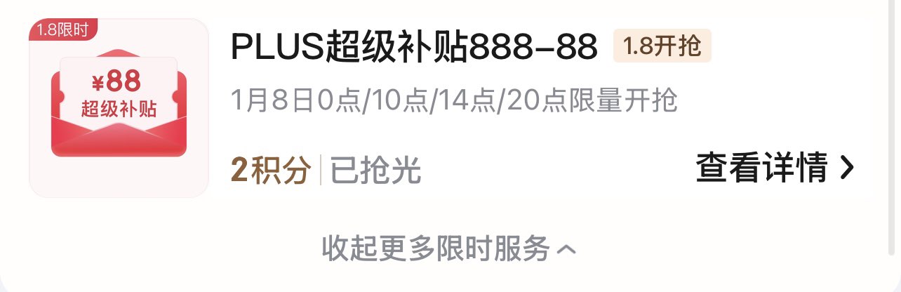 10点开抢 Plus抢全品神券 Plus积分兑换888-88全品神券 0点、10、14、20点 好单发报员 2026年01月08日 09:15 0 举报 10点开抢 Plus抢全品神券Plus积分兑换888-88全品神券0点、10、14、20点四个时间段可领 必领https://u.jd.com/E6d558z 复制文案