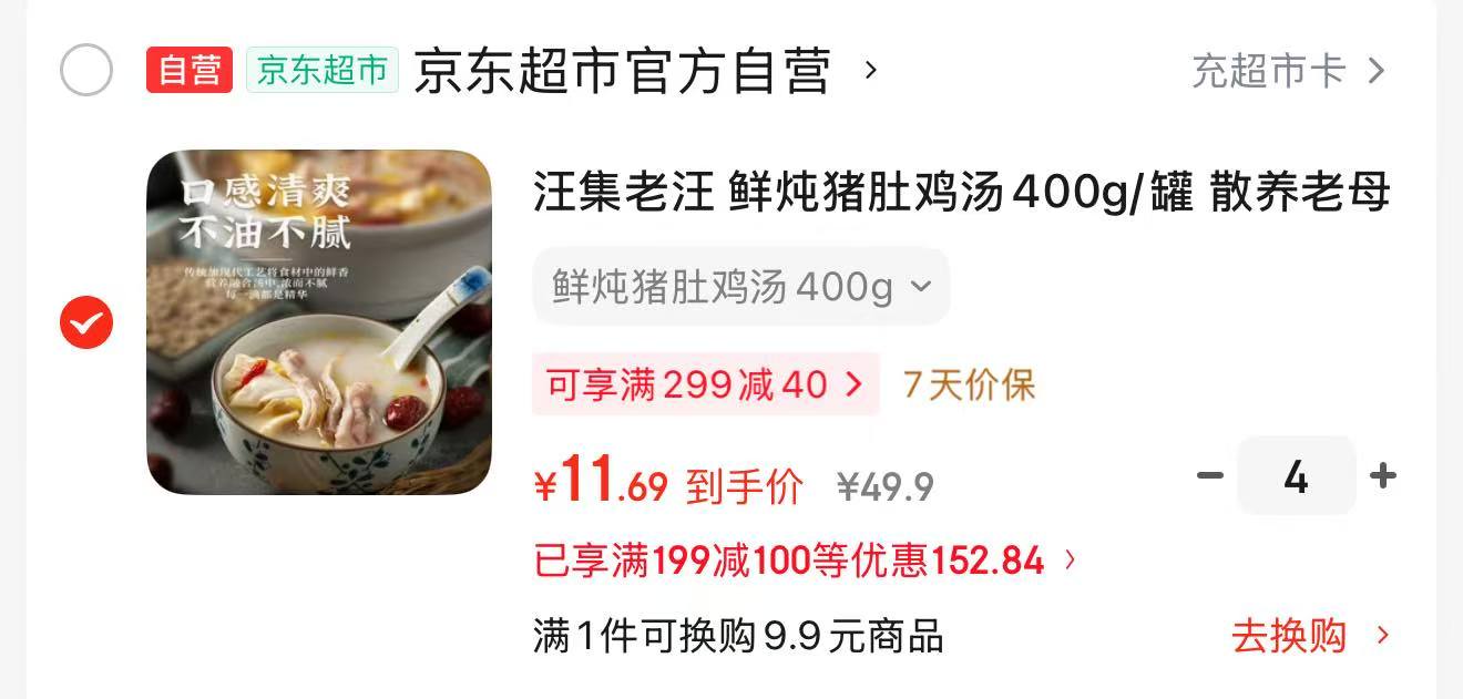 汪集老汪 鲜炖猪肚鸡汤400g/罐