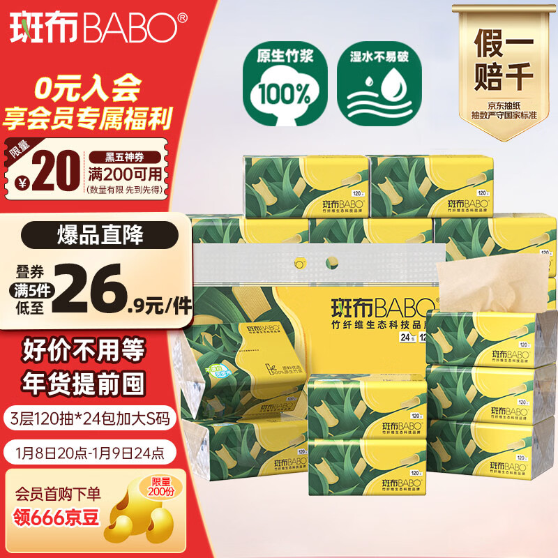 JD自营 斑布 抽纸 加大S码