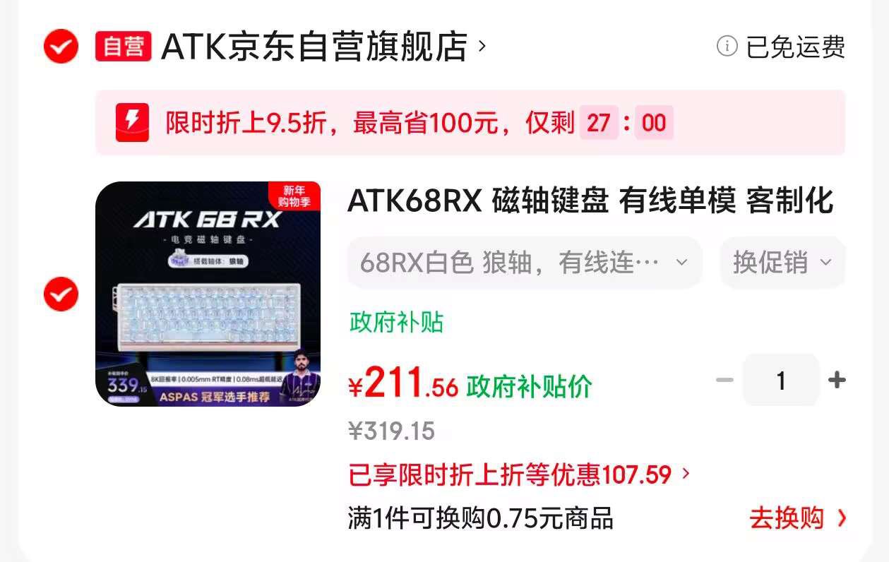 ATK 68RX磁轴键盘【211】史低!