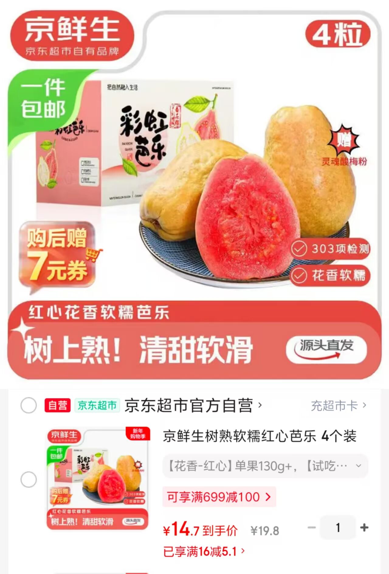 京鲜生花香红心芭乐4粒
