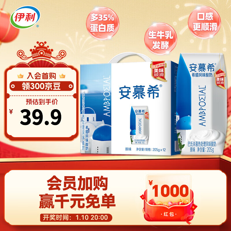 安慕希 希腊风味酸奶 原味 205g 12盒