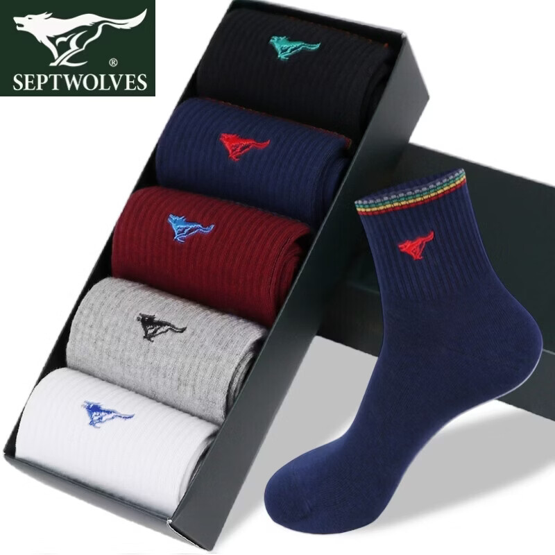 七匹狼 纯棉偏厚款运动袜 混色5双