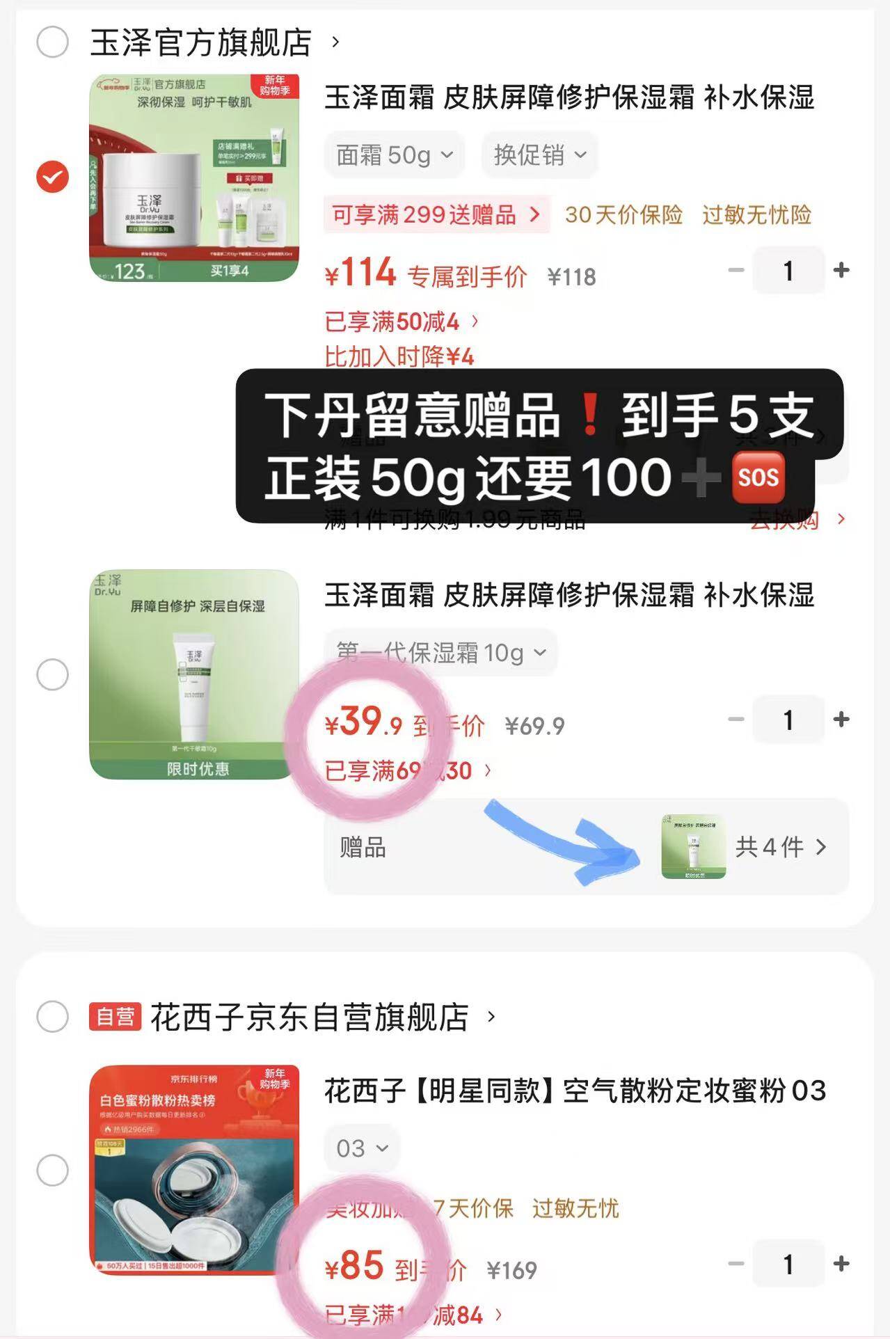 39元玉泽面霜含赠共50g