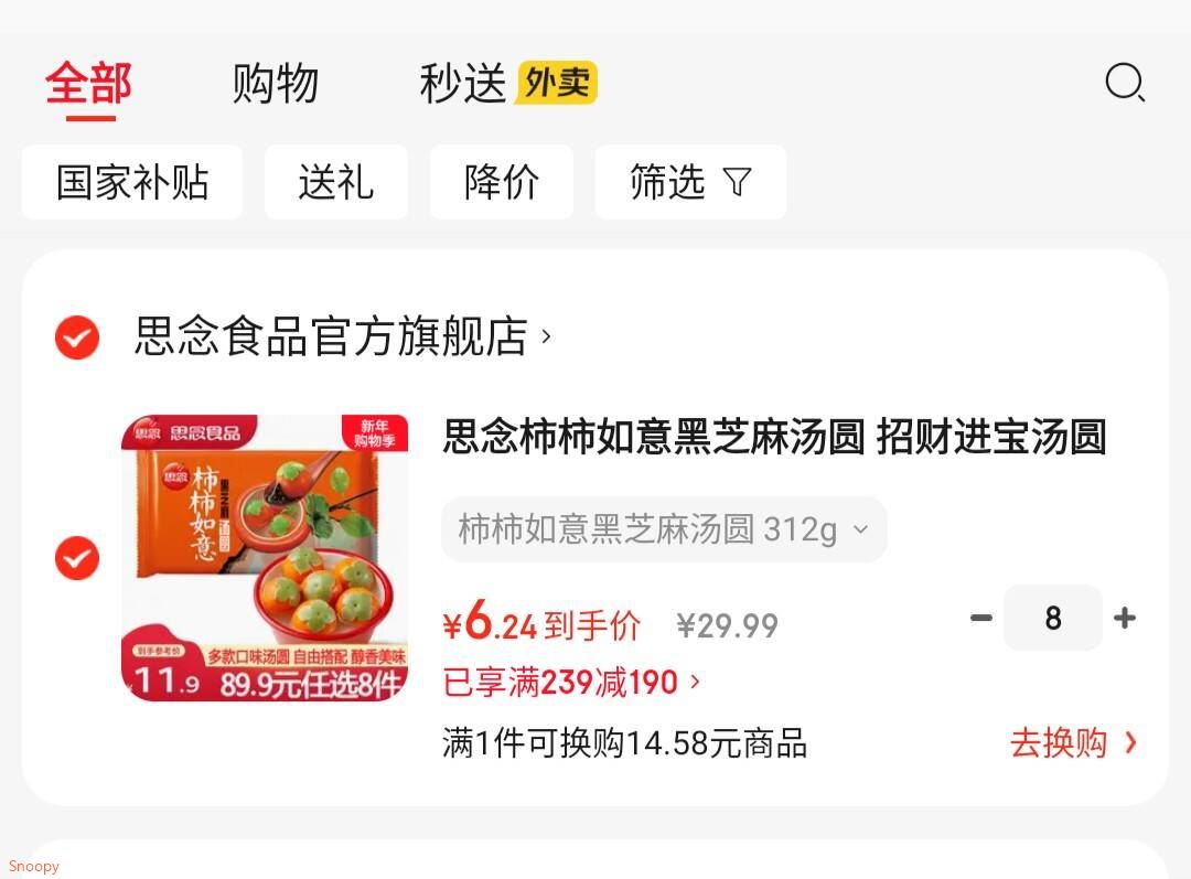 领239-190 思念 柿柿如意黑芝麻汤圆 312g,任选8件 49.9 好单发报员 2026年01月11日 00:11 0 举报 领239-190 https://u.jd.com/Erq1r3H 思念 柿柿如意黑芝麻汤圆 312g,任选8件【49.9】https://u.jd.com/EgqT0Ae 复制文案