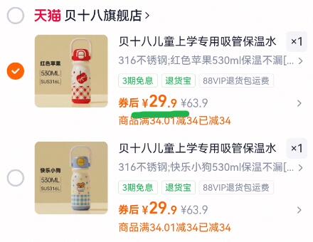 29.9亓好圿四款任选 母婴级别,拍下即赠杯刷 贝十八 316L不锈钢保温杯500ml好单发报员2026年01月11日 00:520举报 29.9亓好圿四款任选母婴级别,拍下即赠杯刷【贝十八】316L不锈钢保温杯500mlhttps://m.tb.cn/h.7QWf4as复制文案