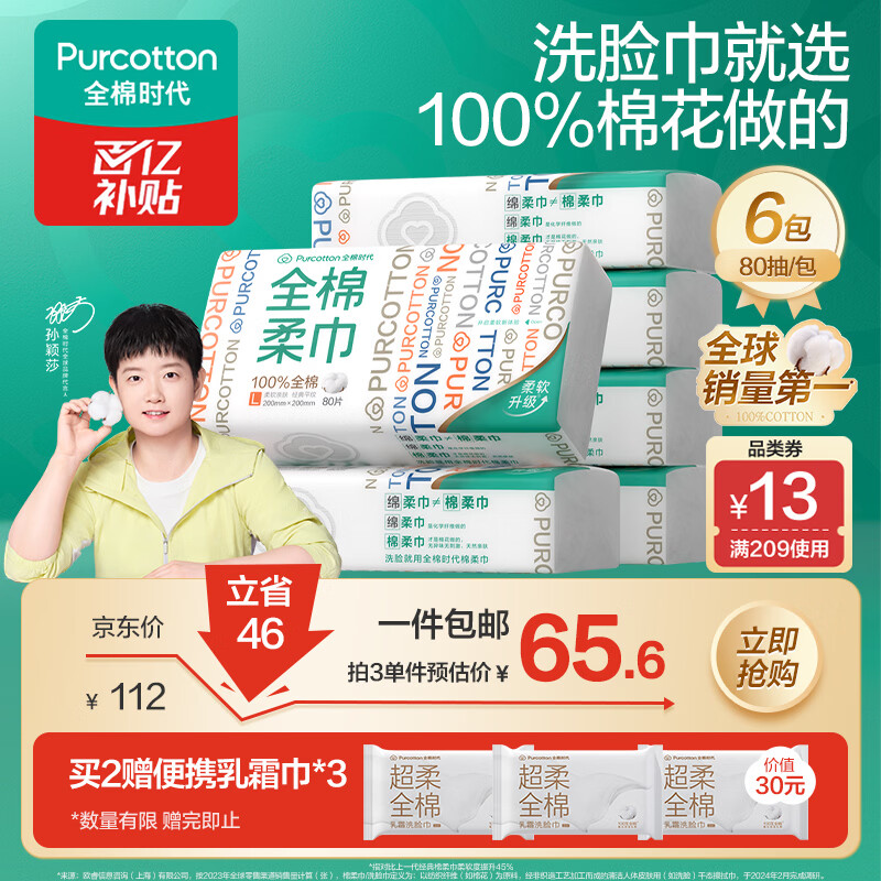 全棉时代 纯棉洗脸巾80片*6