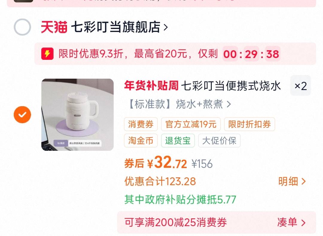 淘金币加购 掉落洪包 叠国补 拍2折32.7/件 七彩叮当烧水杯便携保温杯 好单发报员 2026年01月11日 11:30 0 举报 淘金币加购 掉落洪包叠国补 拍2折32.7/件七彩叮当烧水杯便携保温杯https://m.tb.cn/h.79S9KNI 复制文案
