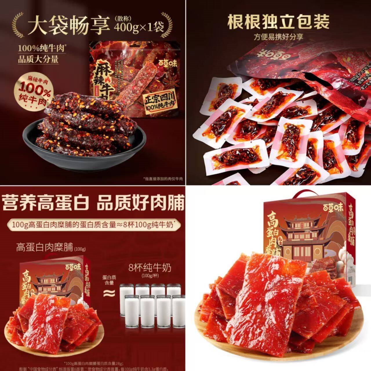 1. 百草味 麻辣牛肉400g