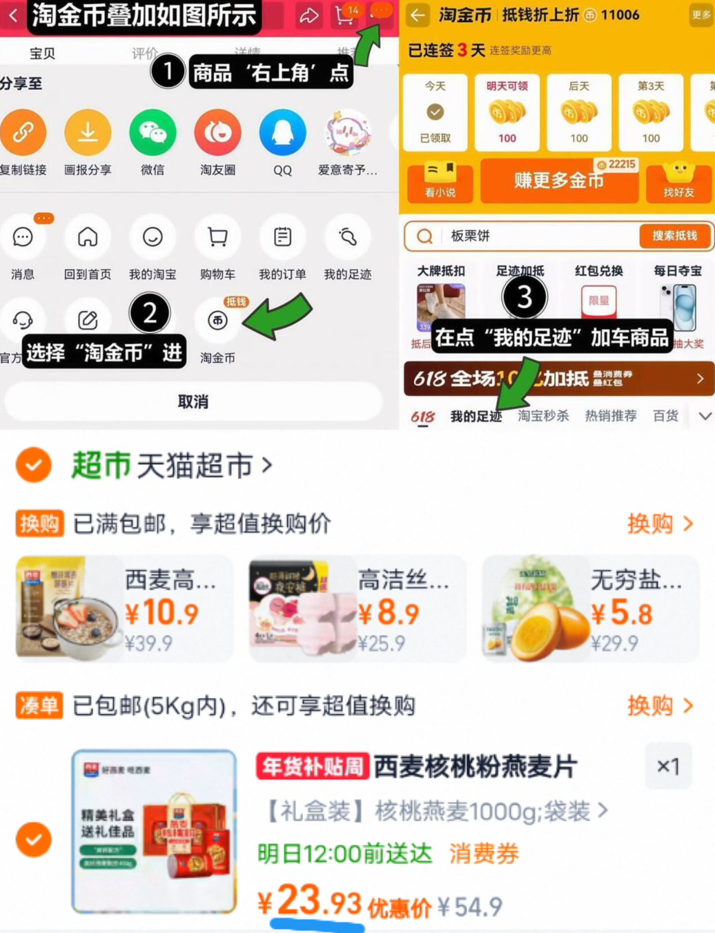 1、如图点右上角3个点,选淘金币