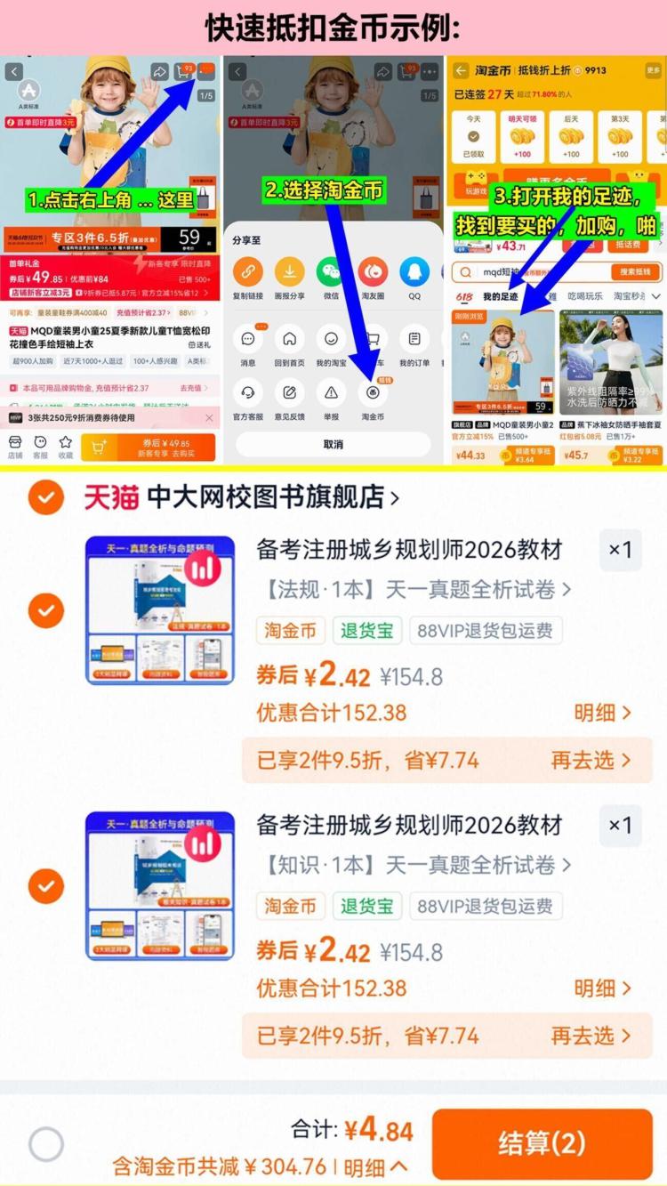 1.商品右上3个点,选淘金币