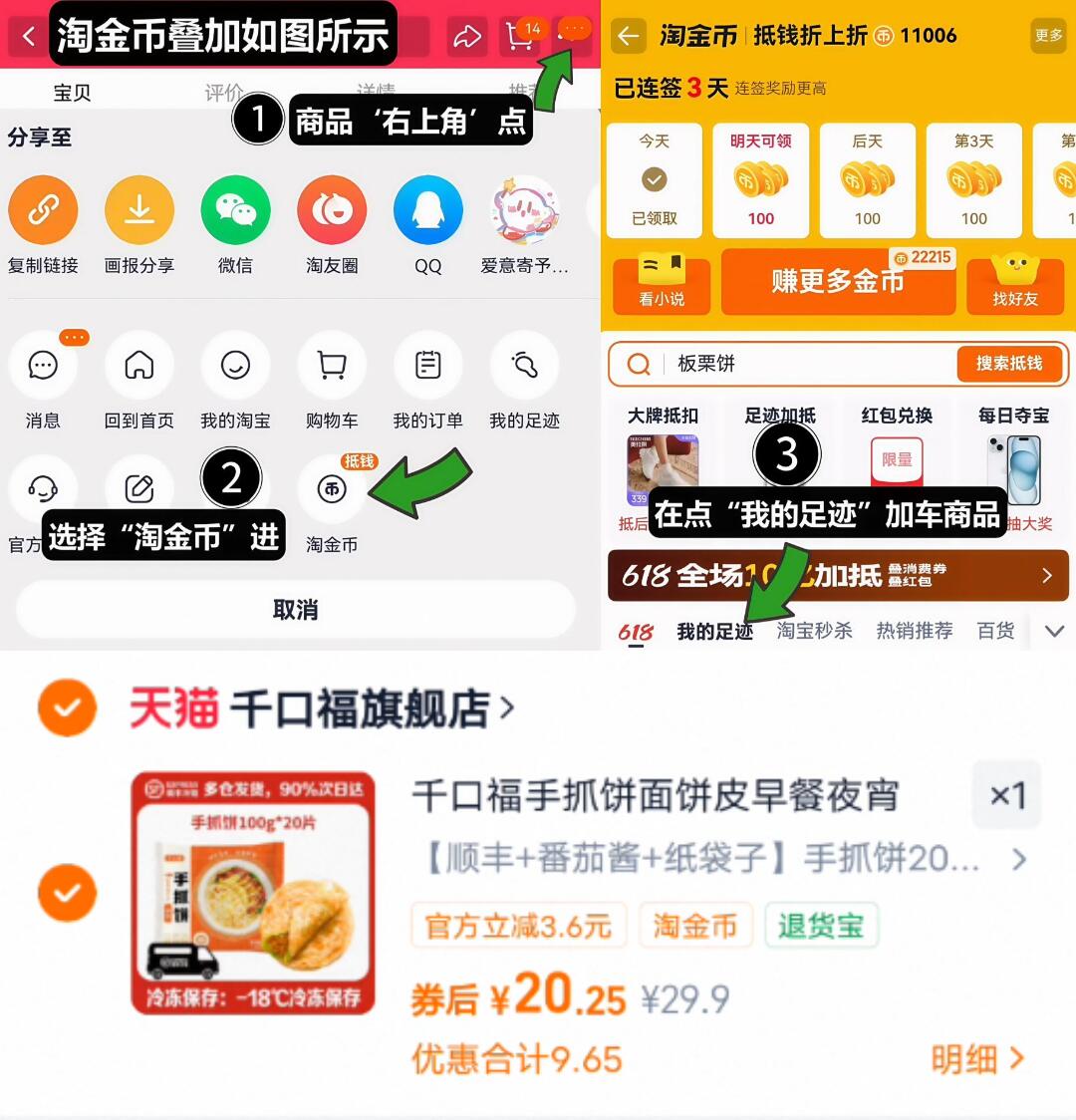 2、选我的足迹-找到商品加车1件/拍下