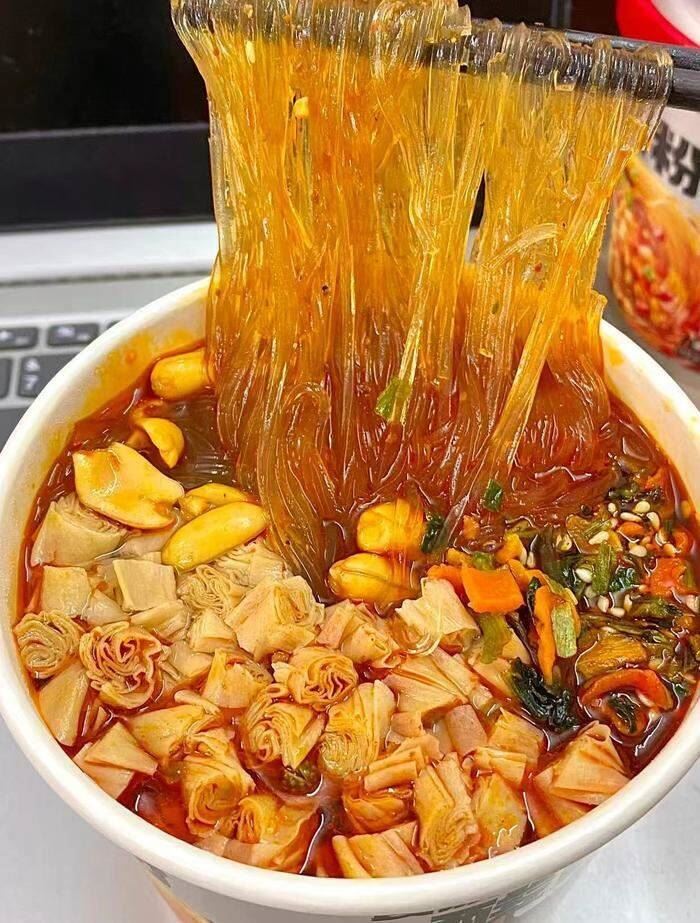 虹薯粉超q弹越嗦越过瘾!酥脆花生 吸满汤汁豆皮每一口下去都巨满足!酸酸辣辣的!连汤带粉嗦起来真的香迷糊了!多口味组合6桶18元!