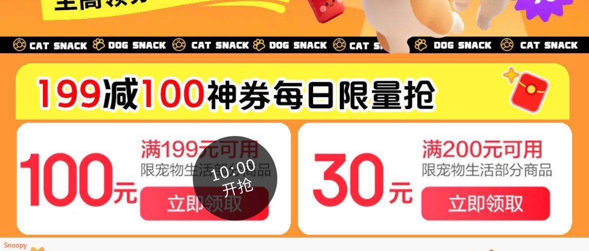 10点 宠物199-100商品券