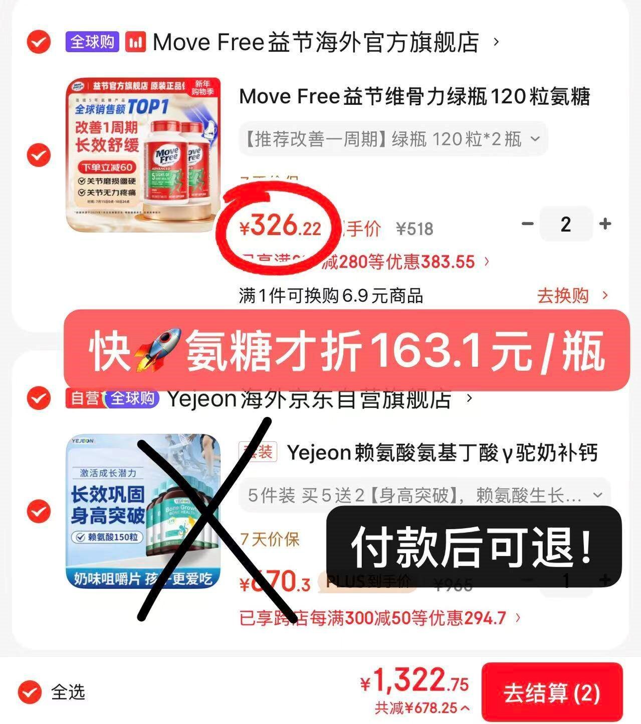 益节 氨糖绿瓶120粒*2瓶 买2