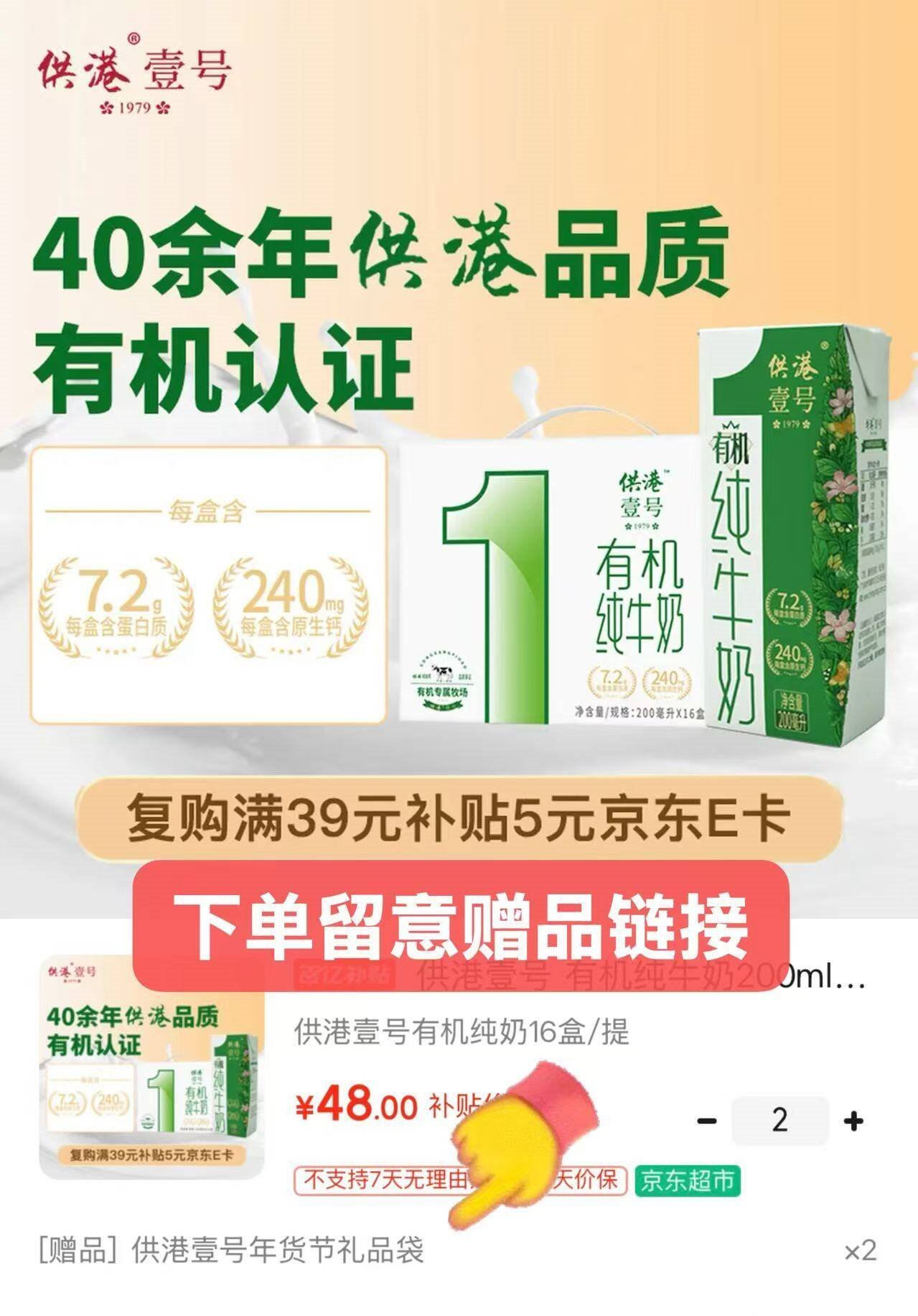 【自营】供港壹号 有机纯奶16盒