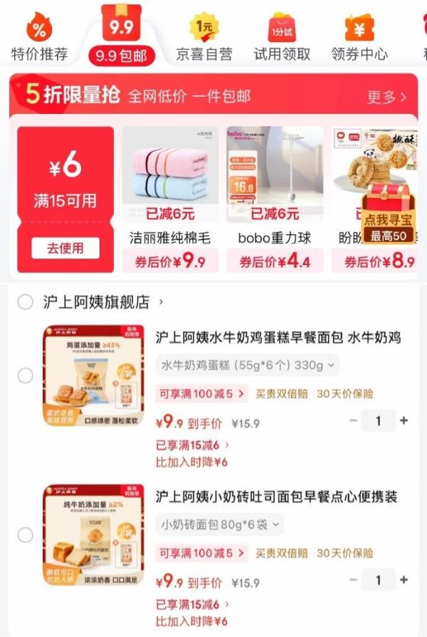 app首页“9.9包邮”领15-6券