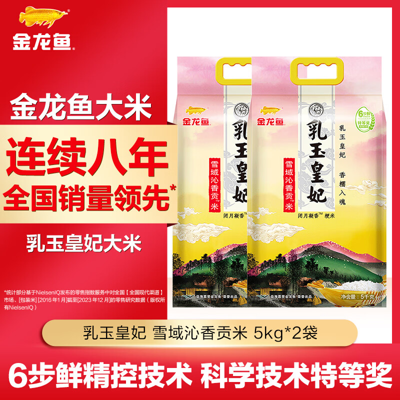 金龙鱼 乳玉皇妃贡米10斤 2袋/龙江长粒香10斤 2袋