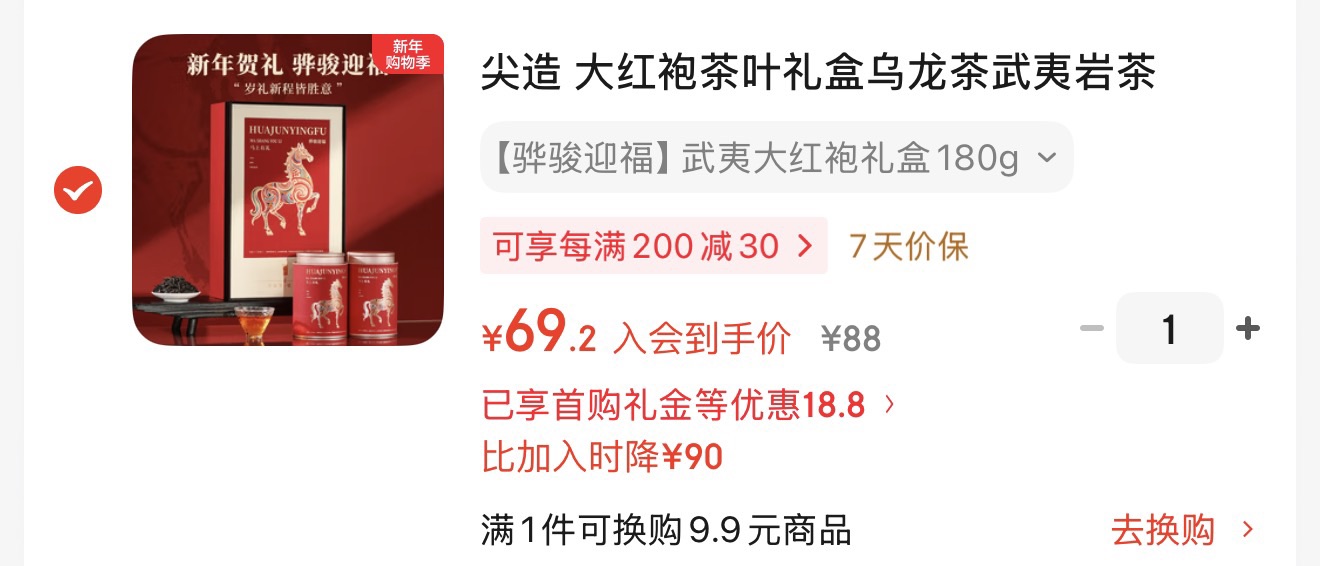 尖造 大红袍茶叶礼盒,试用价88,叠10首单凑后【69.2】https://u.jd.com/E1P3d8H