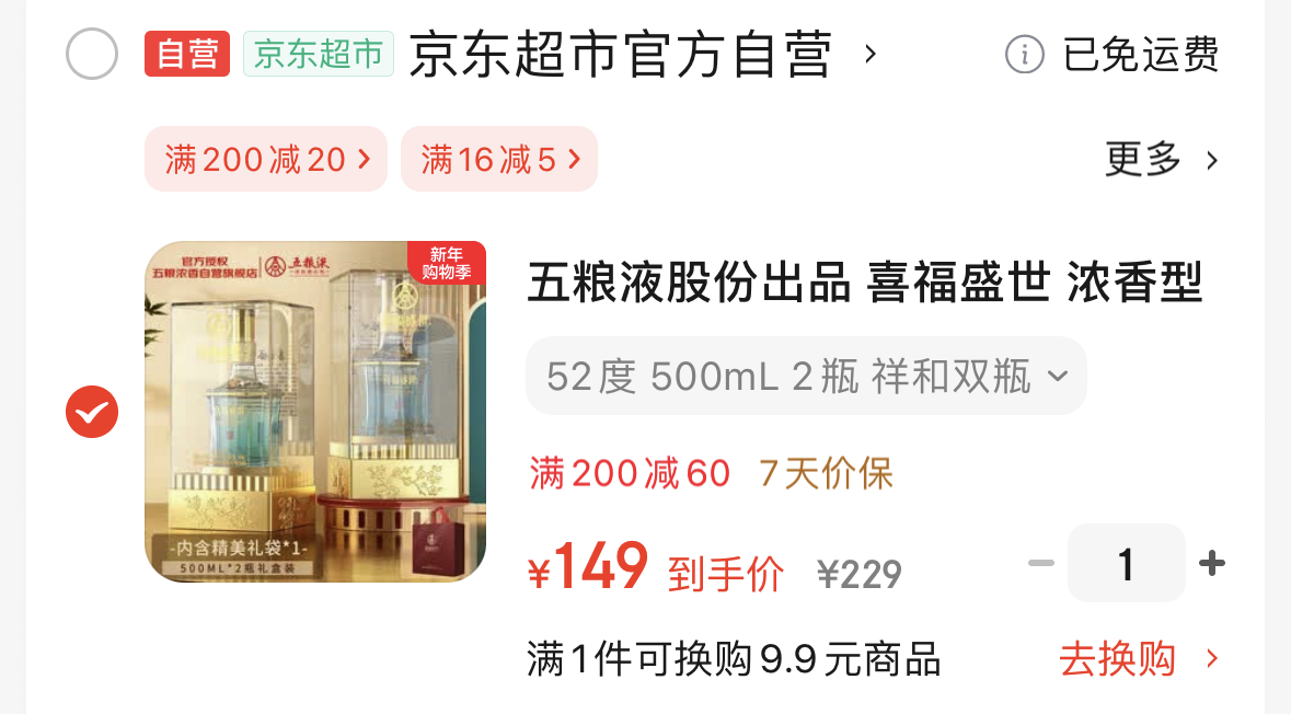 【包u】五粮液 喜福盛世浓香52度500ml*2瓶礼盒装